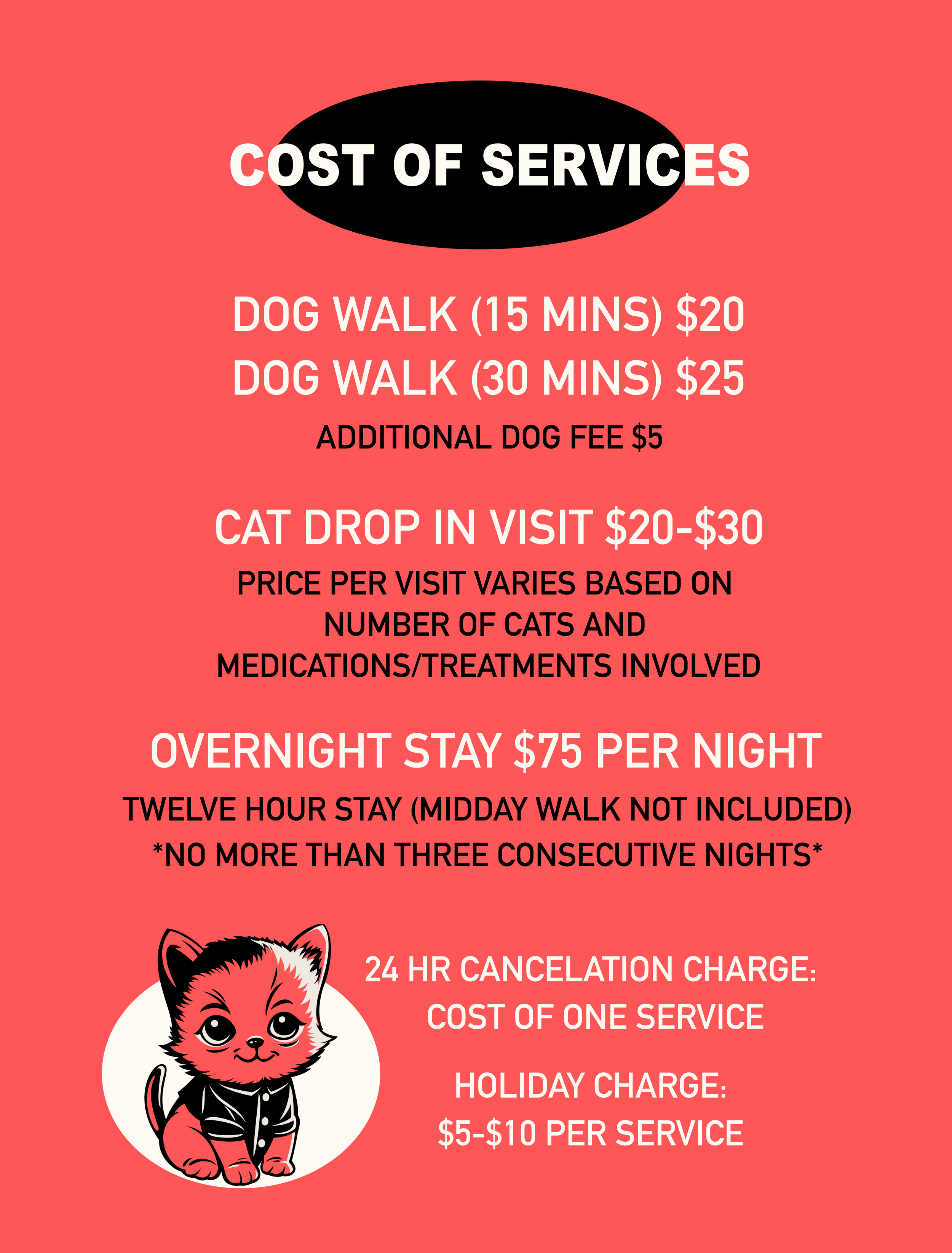 Creature Feature offers dog walking, cat sitting, and overnight services. We’ll look after your unusual creatures too! Thanks to our veterinary experience, CFP is able to accommodate limited medical services, such as: insulin injections, subcutaneous fluids, and medication administration.